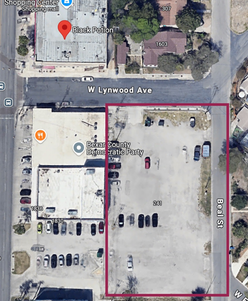 We will meet at the Black Potion on Fredericksburg Rd. Parking is in the gravel parking lot next to the building, as shown in the picture below.